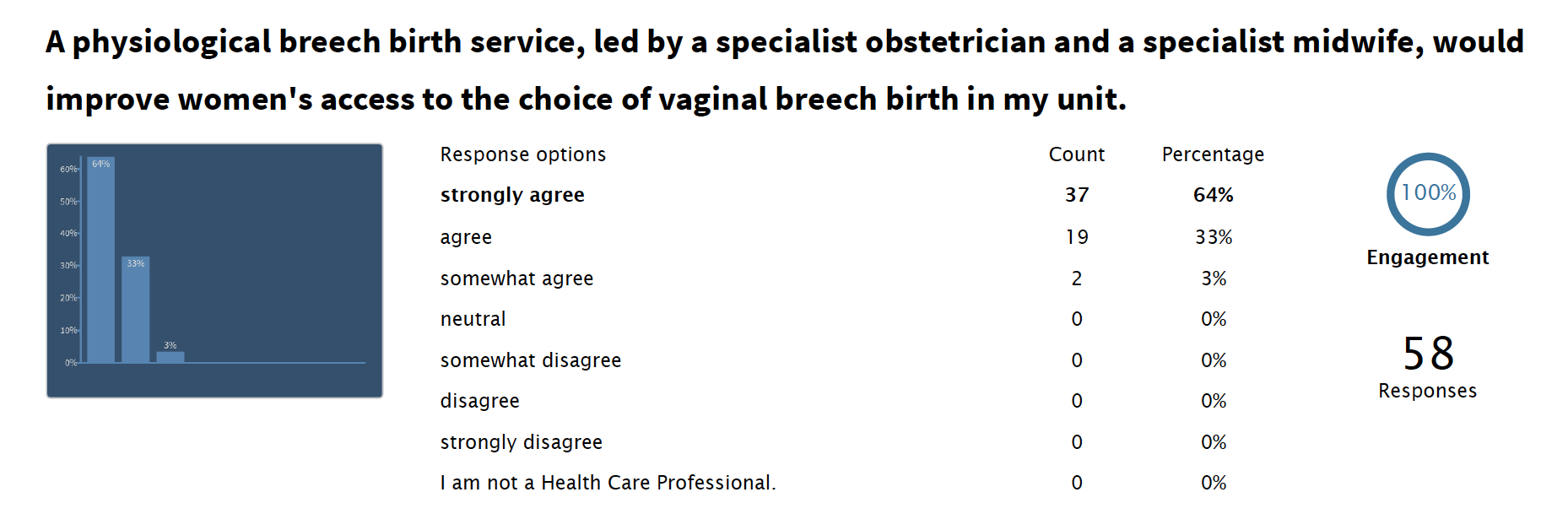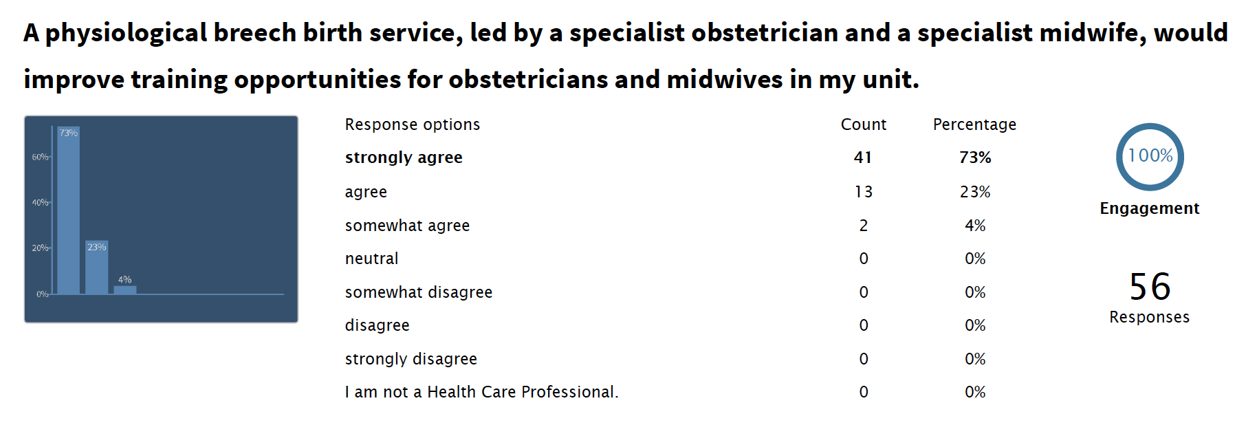 Qualitative evidence from both women and clinicians contributing to OptiBreech feasibility work confirmed the lack of accessibility of this care option, which national guidelines state that women should be offered. The OptiBreech pilot trial was stopped early because at an interim analysis, there was ALREADY a statistically significant difference in the number of women planning a vaginal breech births under OptiBreech Care compared to standard care, in which none planned a VBB.